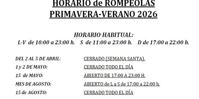 Horario y festivos primavera verano 2026