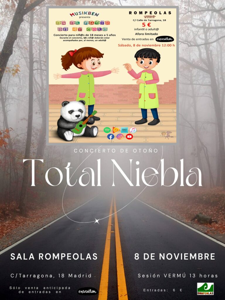 Total NIebla y Musikben para el sábado 8 de noviembre. Musikben a las 12:00 hrs y Total NIebla a las 13:00.