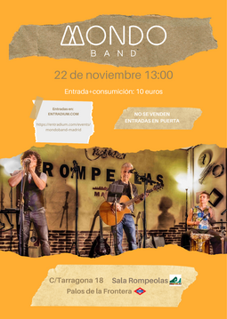 Concierto acústico MondoBand & Friends Sesión al mediodía. Os esperamos. Un directo de calidad y comprometido. Acceso permitido a menores de 16 años acompañados de persona adulta responsable, debidamente identificados.